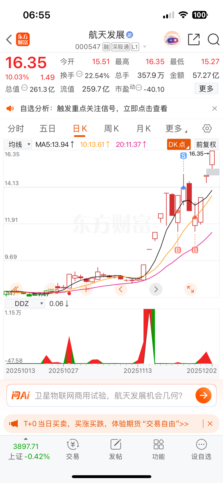 $航天发展(SZ000547)$ 来个高手说一说,今天跑不跑