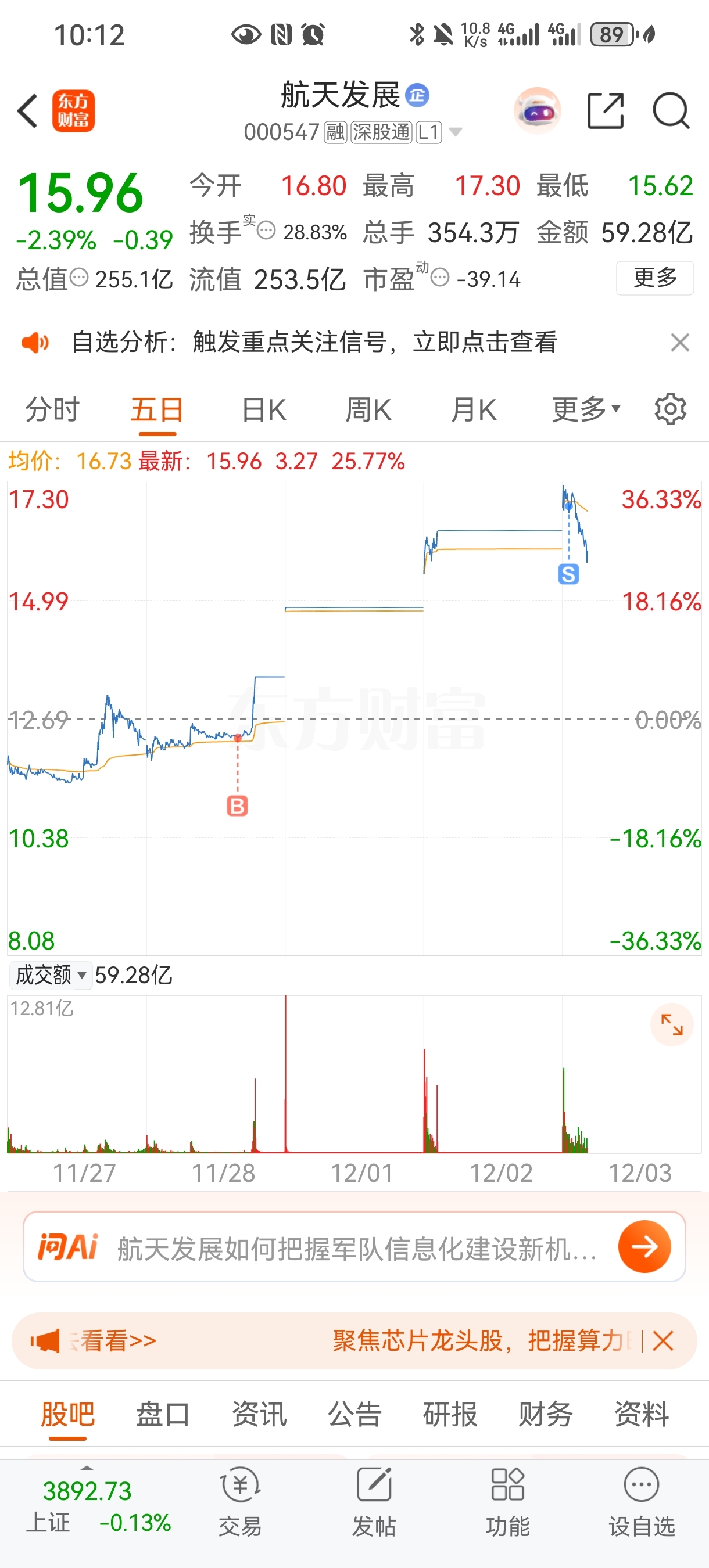 $航天发展(SZ000547)$ 地天板把我洗出去了