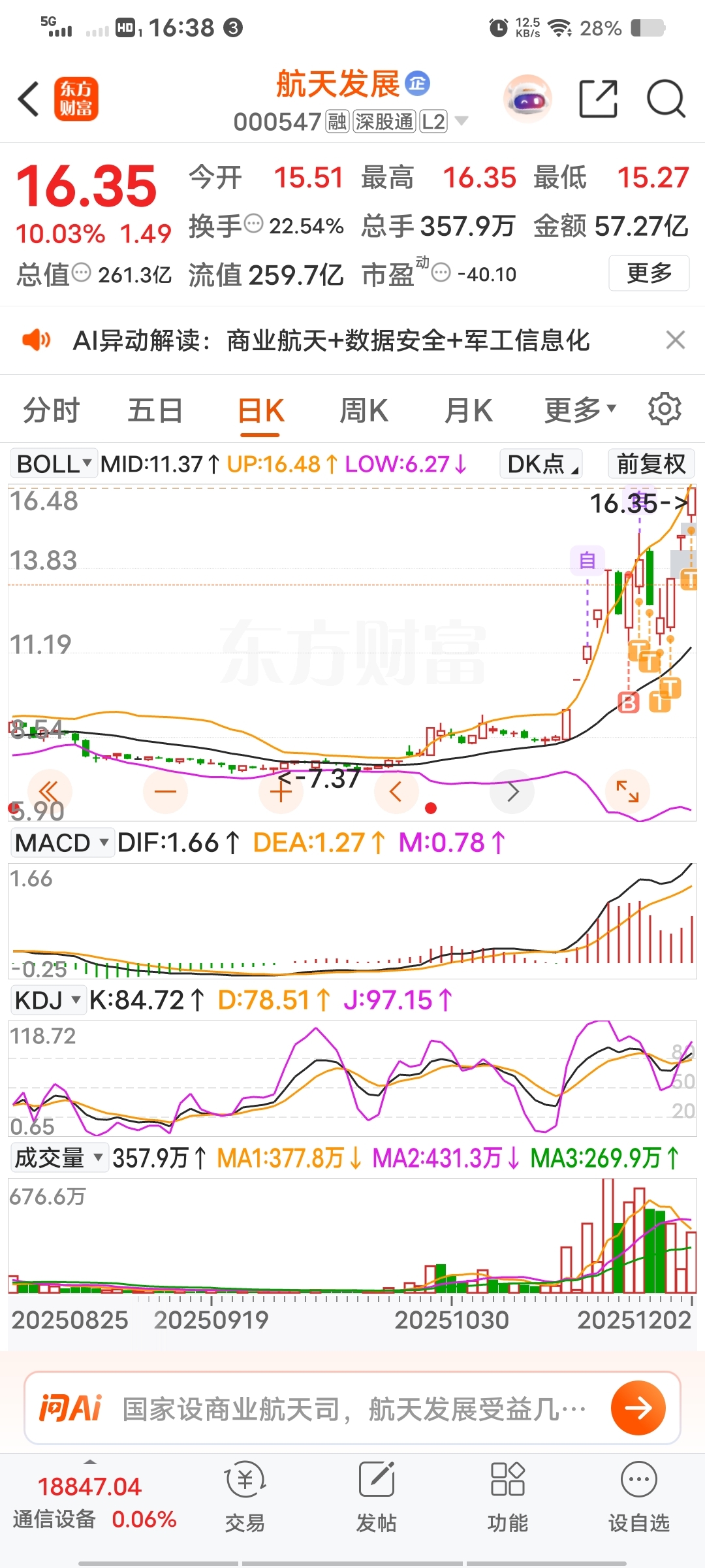 $航天发展(SZ000547)$ 清仓了,开盘已经说明了一切,挂跌停走了,没跑到最高点,今天进的钱明天还得亏,游资自救罢了,总体还是赚的,守住利润了