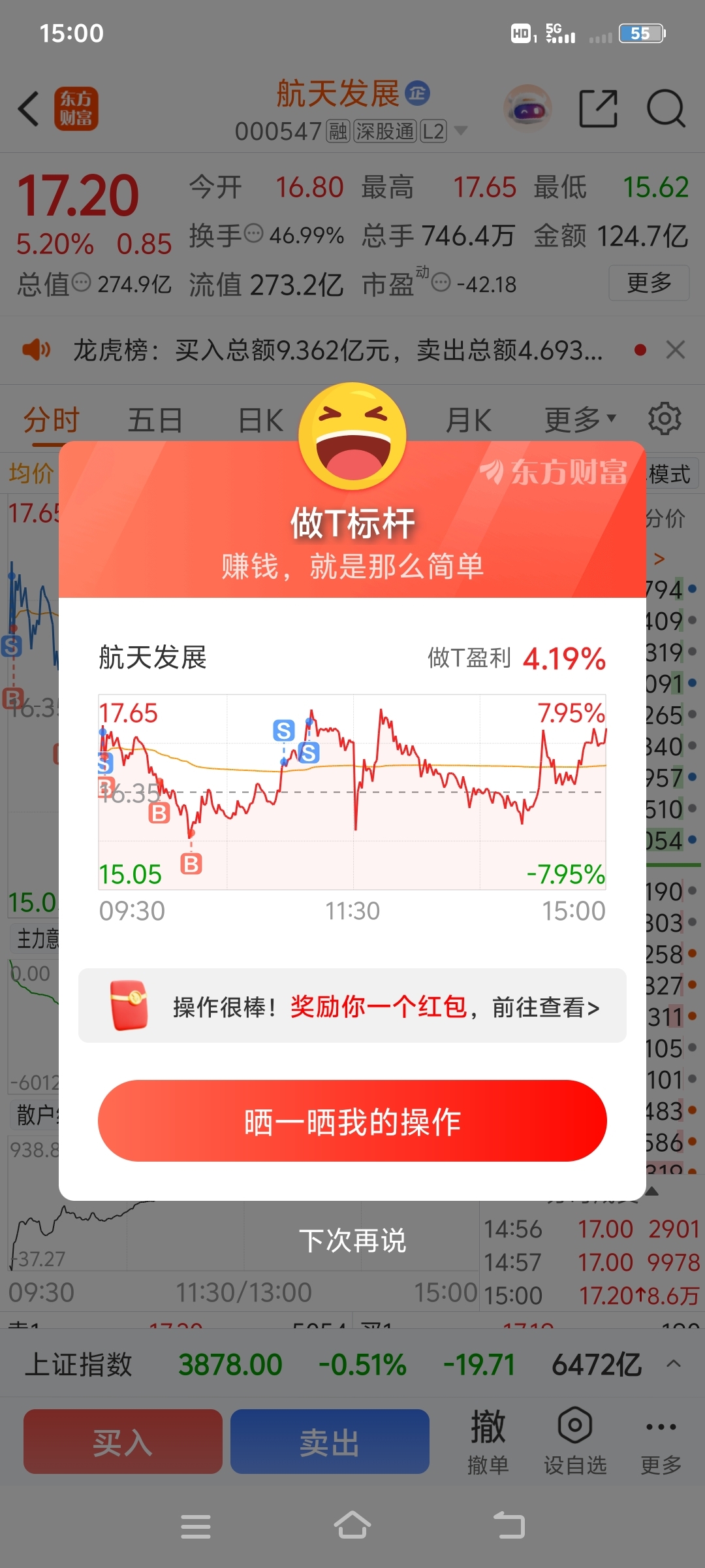 $航天发展(SZ000547)$ 结束了,今天比地天还要精彩,有幸参与其中,后续半仓陪你走完