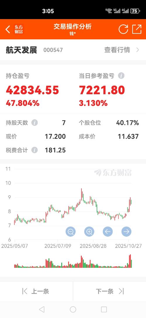 $航天发展(SZ000547)$ 早上赚3个点走了,没想到下午买回来又赚8个多点,明天就是跌停也才亏1个多点。这让怼我的韭菜们情何以堪,本来都不想气他们,但确实太没素质了。