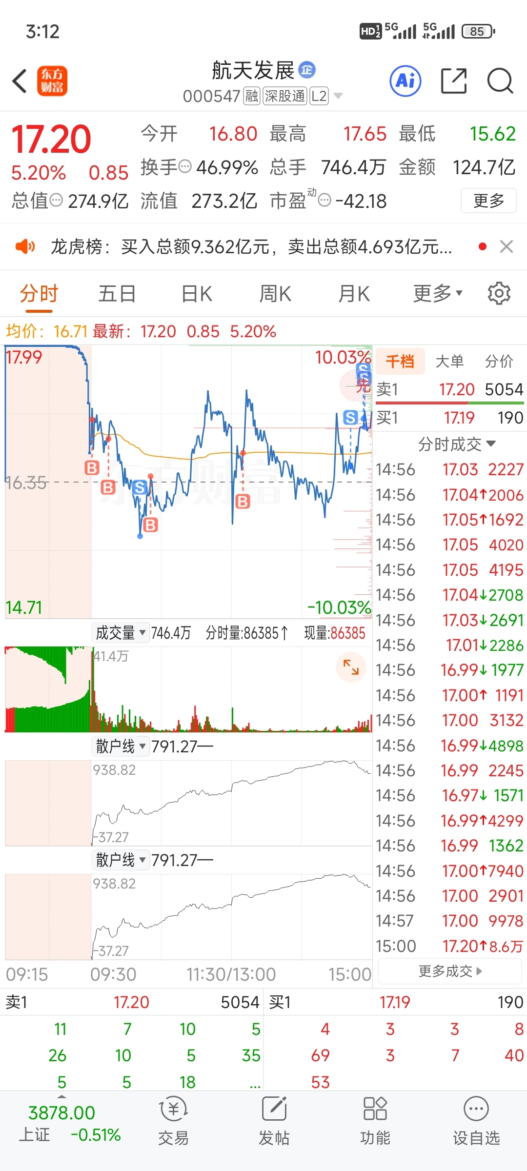 今天量特别大,换手也高,尾盘冲高出了半仓。不知道对错。