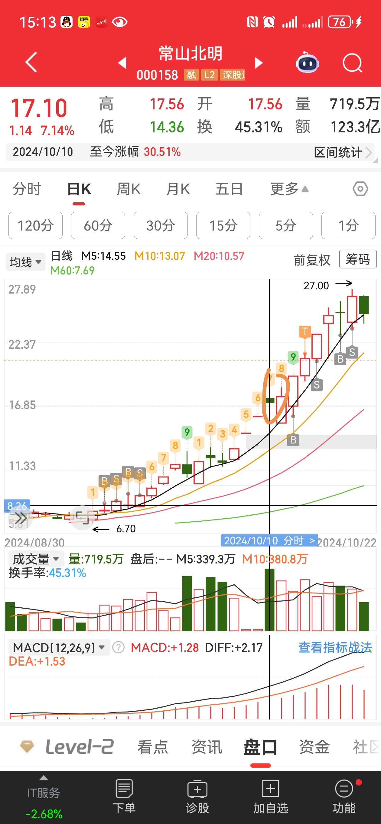 航天发展的今天就是常山赵子龙24年10月10日这一天,连价格都差不多,后期走势不