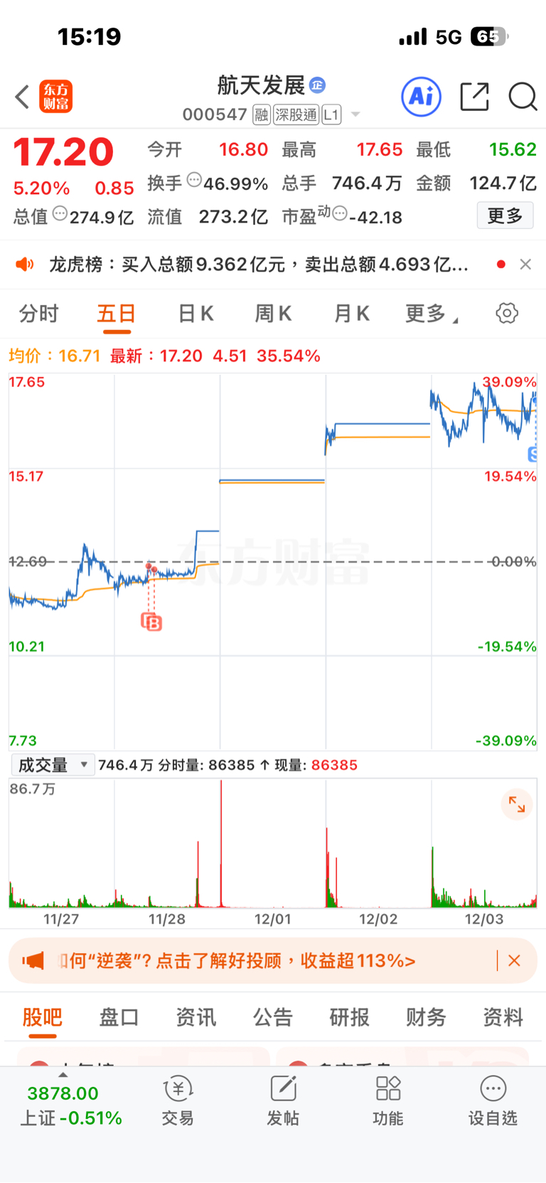 $航天发展(SZ000547)$ 明天低开再来