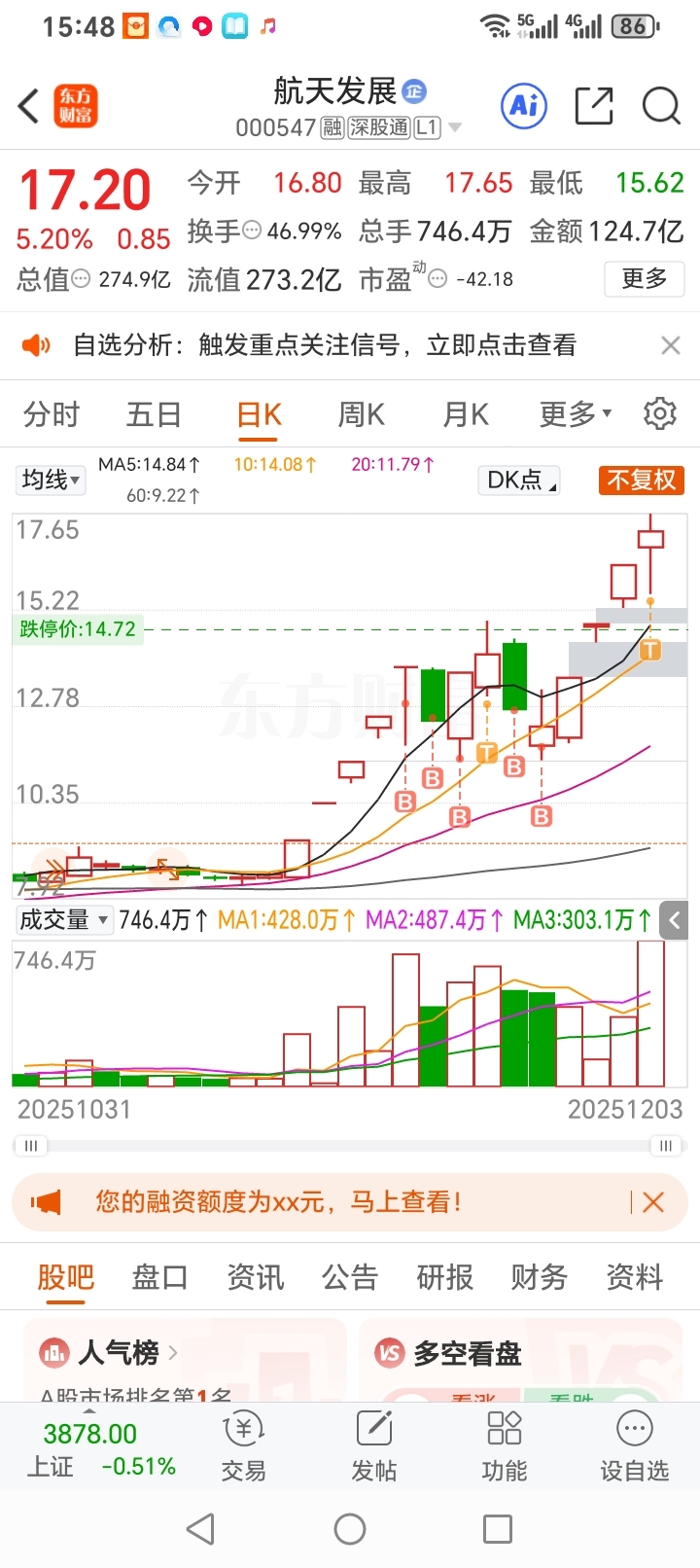 $航天发展(SZ000547)$ 做了二次T,还是有点怕,卖出了三分之一,将成本降至9.34元。