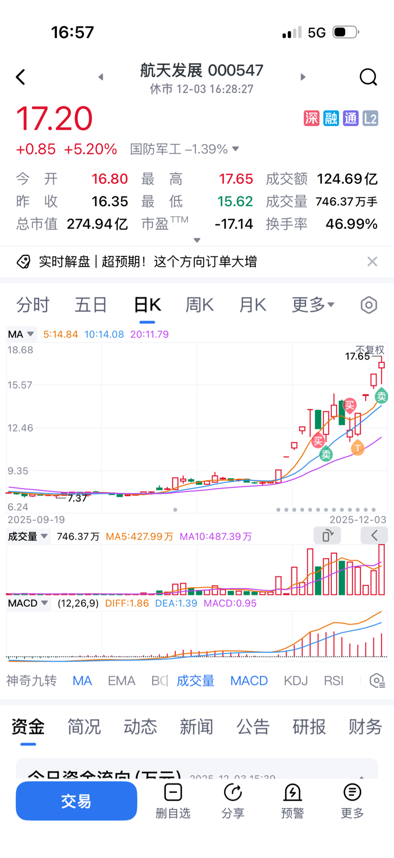 $航天发展(SZ000547)$ 留下的发财,我让洗出去了
