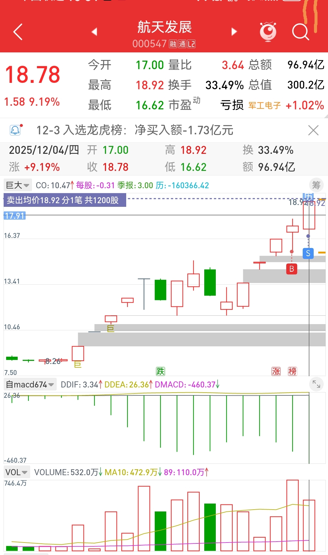 $航天发展(SZ000547)$ 昨天水下两个点买的,今天卖了,接近十八个点,也算是曾今参与过龙头了