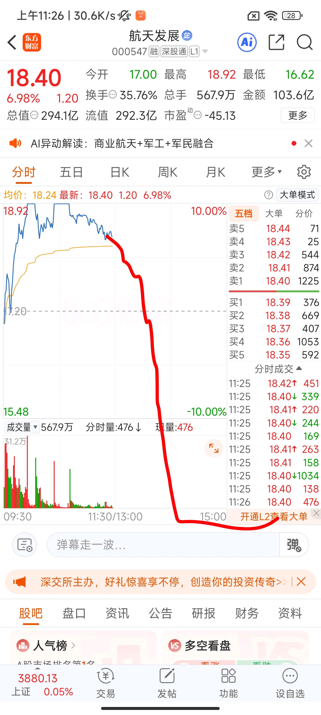 $航天发展(SZ000547)$ 下午我们直接量化砸盘。