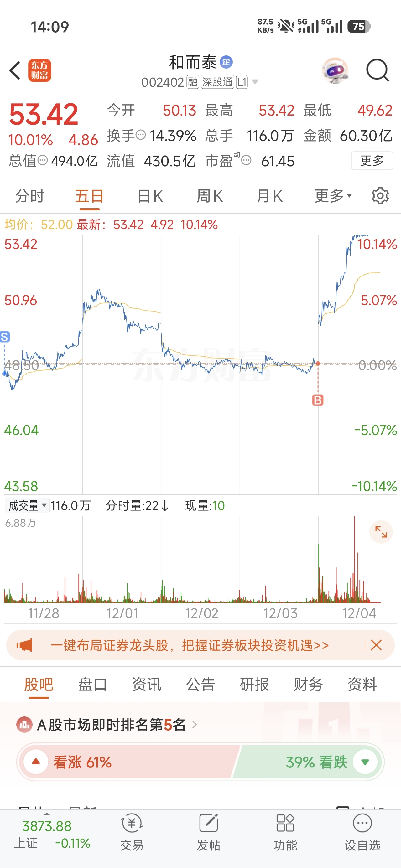 虽然昨天跑了少吃了一个涨停,但是今天和而泰补回来了