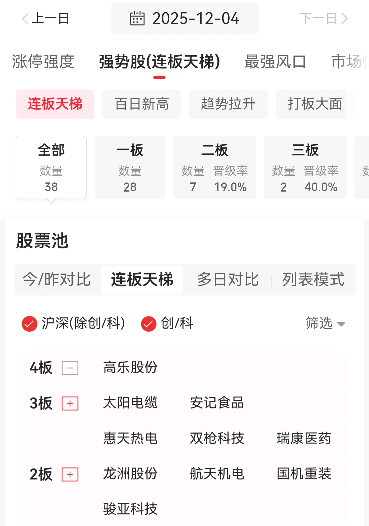 连板有点推倒重来的意思,昨天讲了海洋生物跟海欣食品会一起嘎,即使今天海王回封依旧扛不住海欣补跌。所以下次遇到双子星模型,看到一方断板,另一个也要注意风险。目前连板高度到了4板,退潮期有高度压制,所以做纯情绪接力的多关注低位比如二进三及以下。安记食品跟太阳电缆应该都是一波流了,如果海欣食品是桂发祥,不知道安记能否走成去年的一鸣食品。当然从布局上讲,安记很难超过海欣高度。二板里面航天机电推航天系,双枪科技、惠天热电、骏亚科技都是产业链,瑞康医院属于梯队小药箱,国机重装资金硬做没啥逻辑,欣贺股份、龙州股份福建补涨。