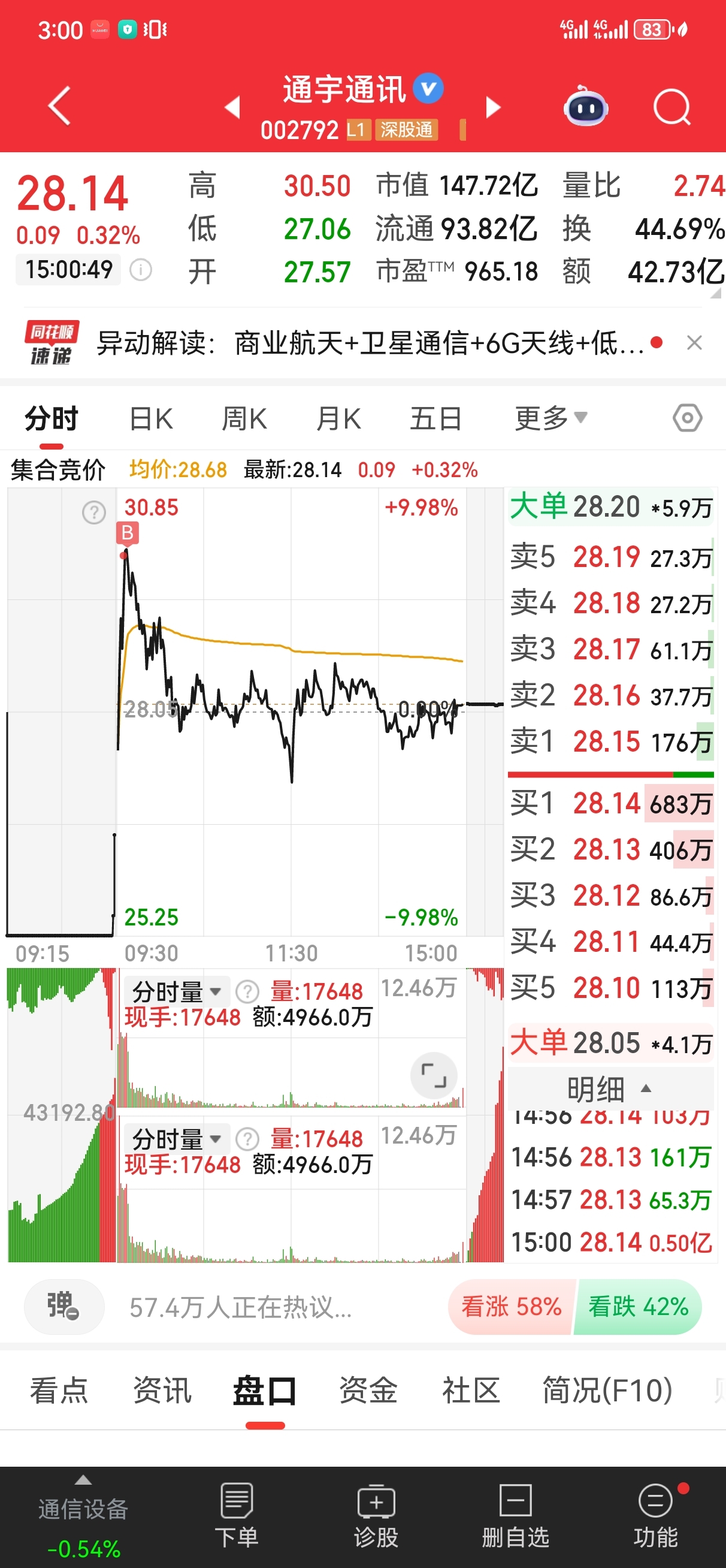 4、通宇通讯逻辑还是不错,目前才64%涨幅,手搓导弹也算国内第一家。股价翻倍才是目标,今天冲高洗盘,参考海南海药11月24日走势,明天若补跌当我没说。