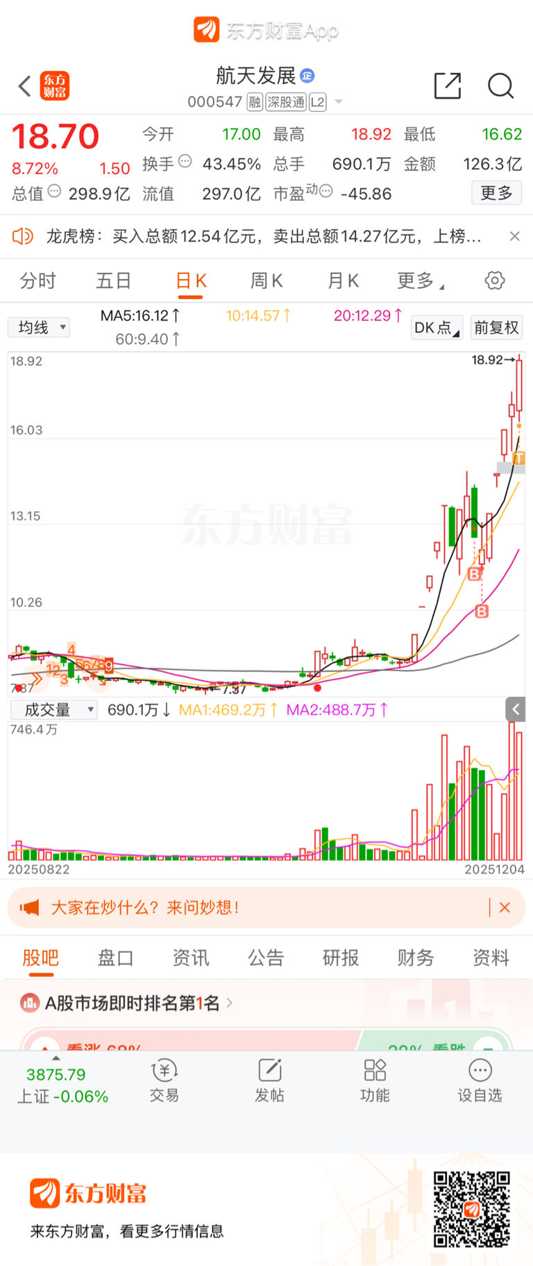 $航天发展(SZ000547)$ 出一半留一半,明天摩尔那边看看情况,最好航发低开找机会再进来。