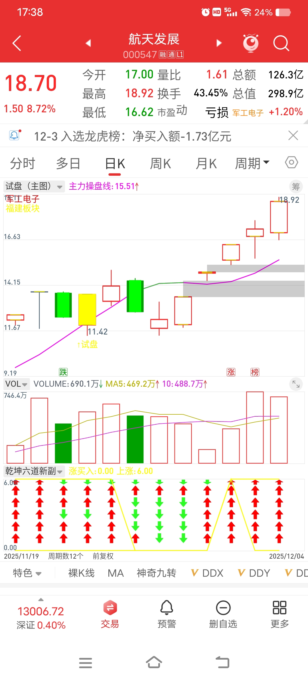 深股通3.5亿/枯竭哥3.18亿/大量化西安西2.4亿/国信浙江1.5亿/新闸路1.5亿桑田路1亿/众多游资合力打造跨年妖,11月13号八元起已经两倍,看到三倍24。二波12月28号12元起倍两倍也是