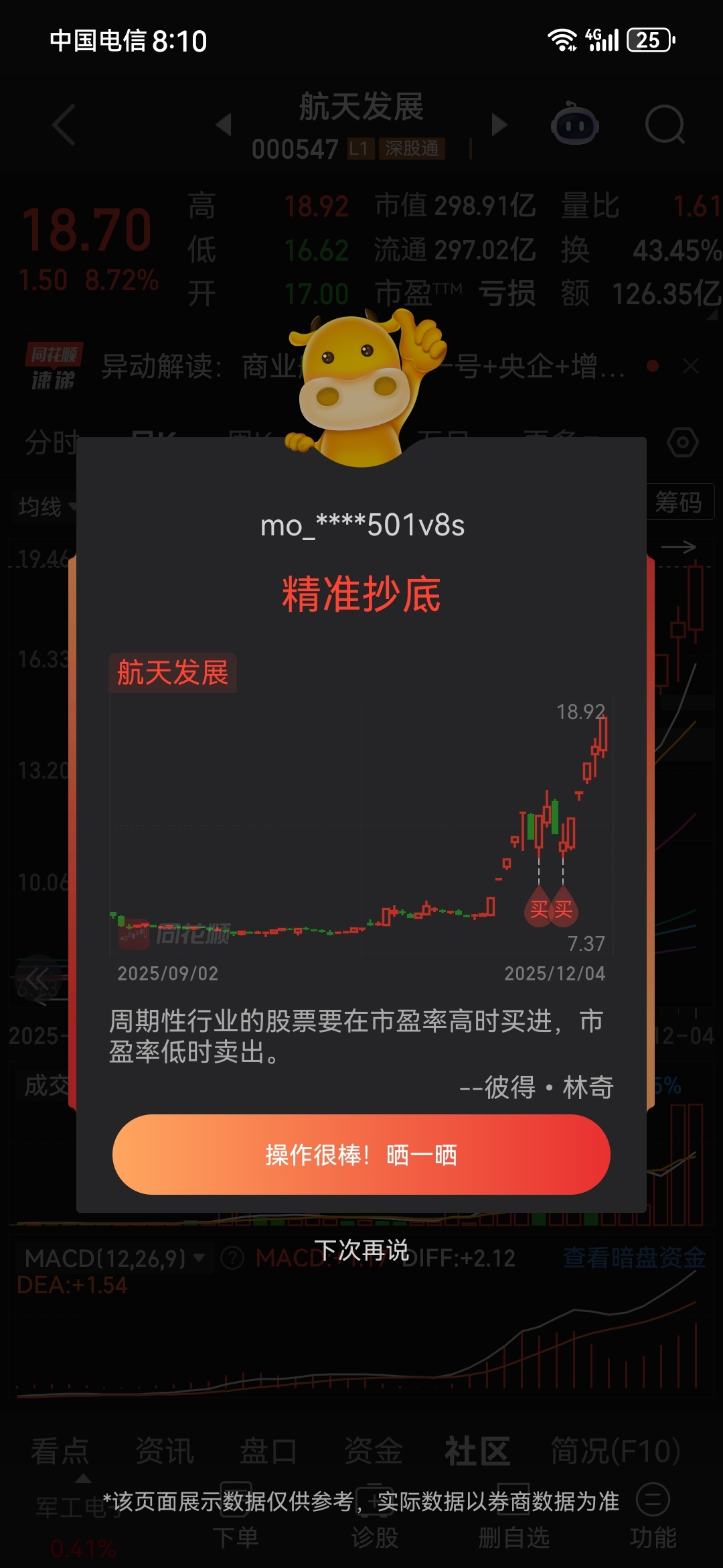 温馨提示: 1.根据《证券法》规定,禁止编造、传播虚假信息或者误导性信息,扰乱证券市场;2.用户在本社区发表的所有资料、言论等仅代表个人观点,与本网站立场无关,不对您构成任何投资建议。用户应基于自己的独立判断,自行决定证券投资并承担相应风险。《东方财富社区管理规定》