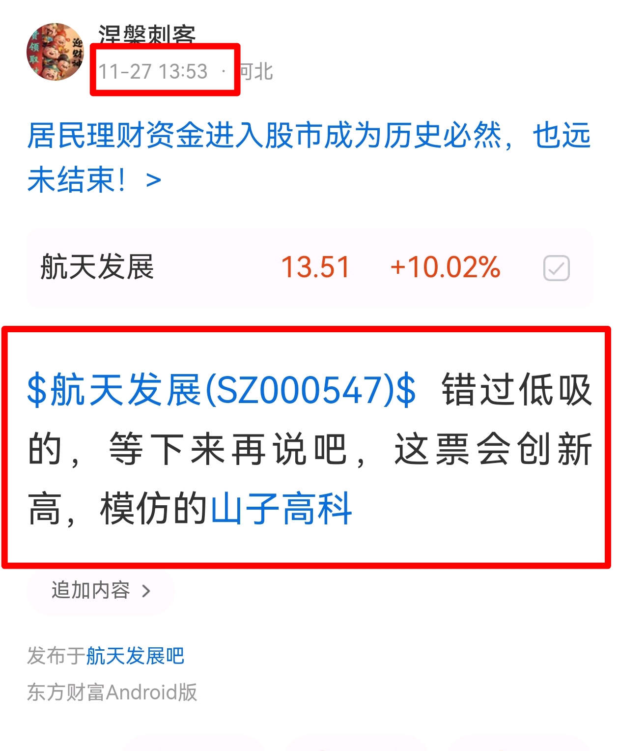$航天发展(SZ000547)$ 模仿山子,成为山子,超越山子,站在风口上的你注定不平凡,加油