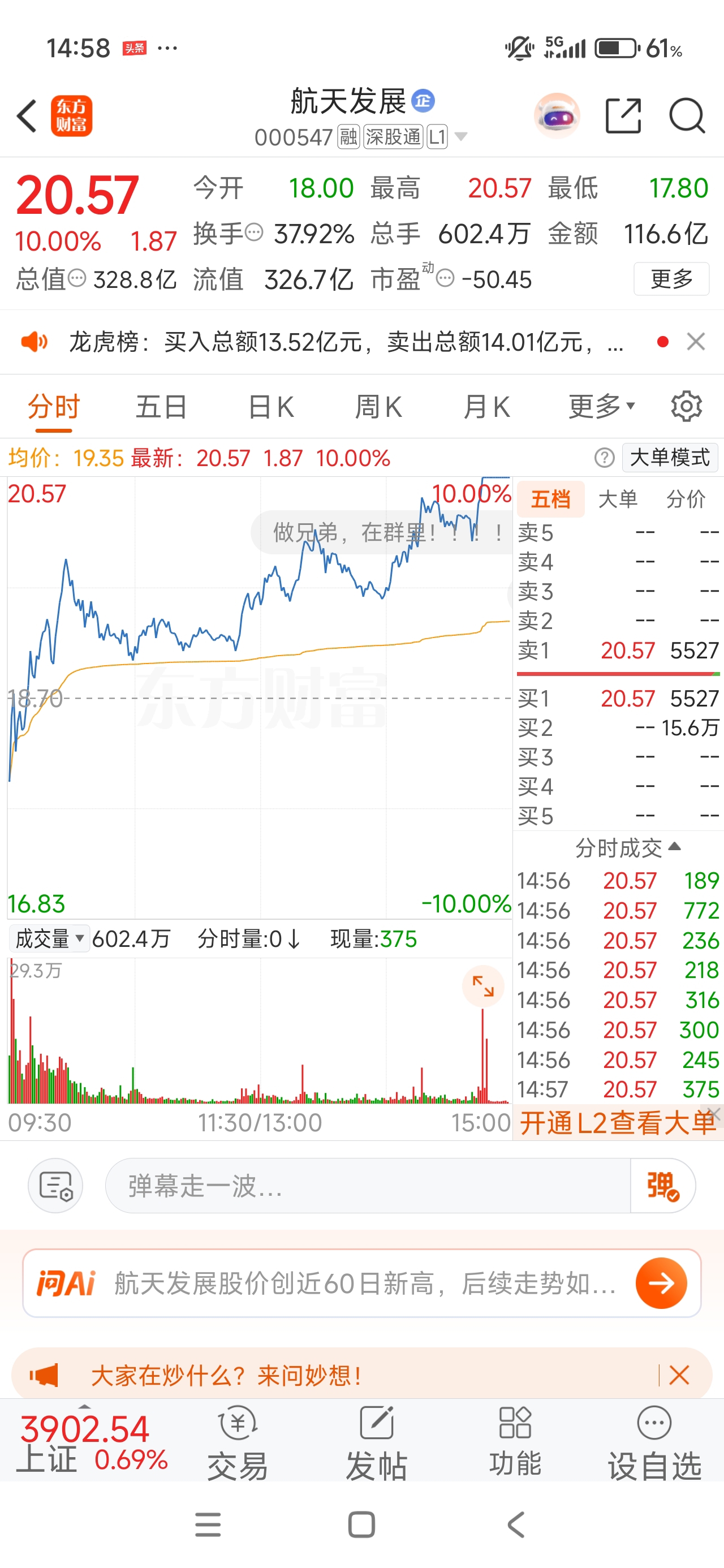 $航天发展(SZ000547)$ 这分时,如果是底部就是吸筹分时,在高位,明显是出货分时。