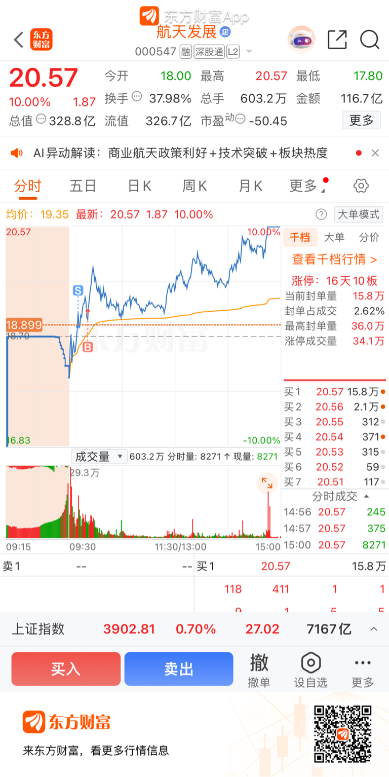 $航天发展(SZ000547)$ 先买出看着承接强又买回