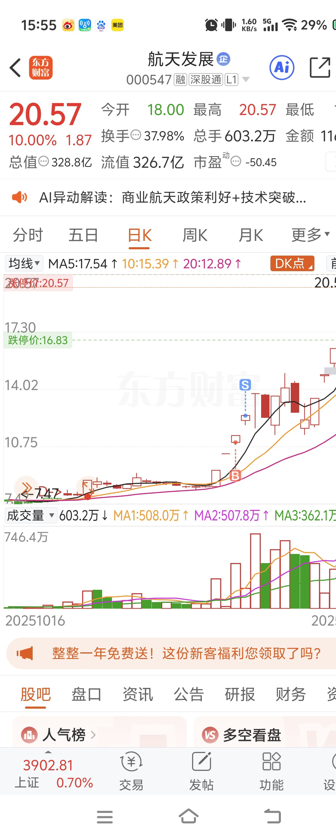 $航天发展(SZ000547)$ 绿油油的大韭菜