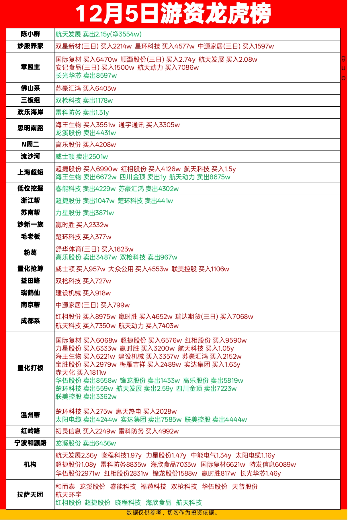 12.5游资龙虎榜,陈小群章盟主作佛山系上榜。
