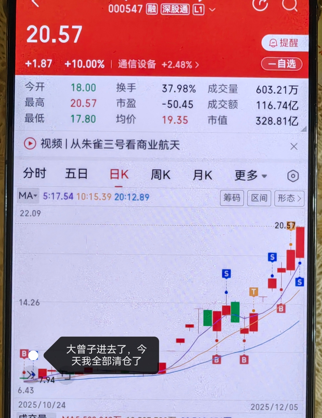 $航天发展(SZ000547)$ 没有吃全,遗憾,昨天大曾子进了,我出清了