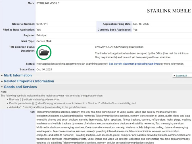 SpaceX已向美专利局申请“Starlink Mobile”商标,业务涵盖通过卫星向手机和智能设备提供实时语音与数据传输,被视为打造全新卫星运营商的关键一步。公司此前以170亿美元获得50MHz S频段资源,并正与高通、联发科合作,将Starlink调制解调器集成进未来手机芯片。