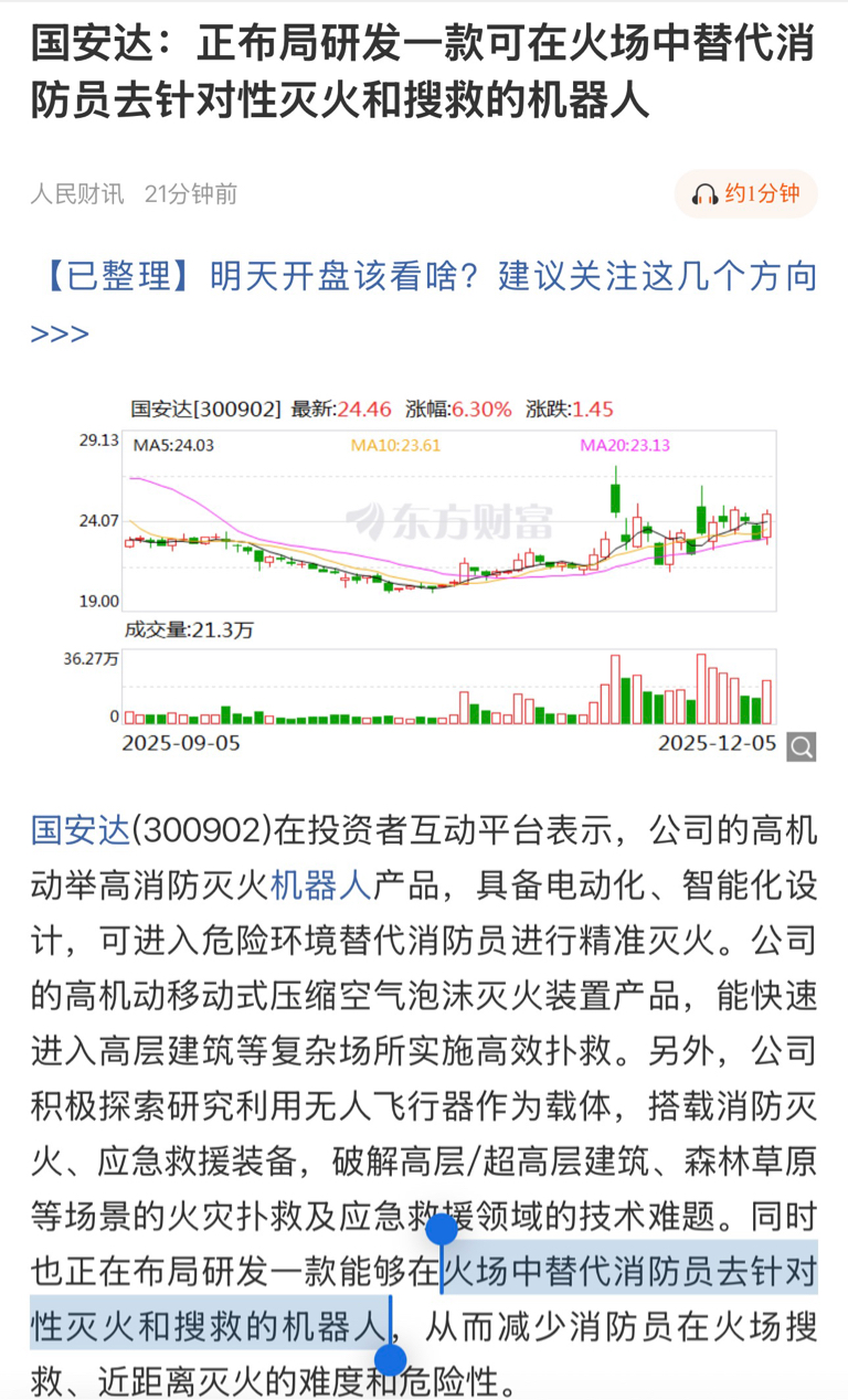 $航天发展(SZ000547)$ 国安达牛逼了,消防机器人来了,替代消防员上高山下火海
