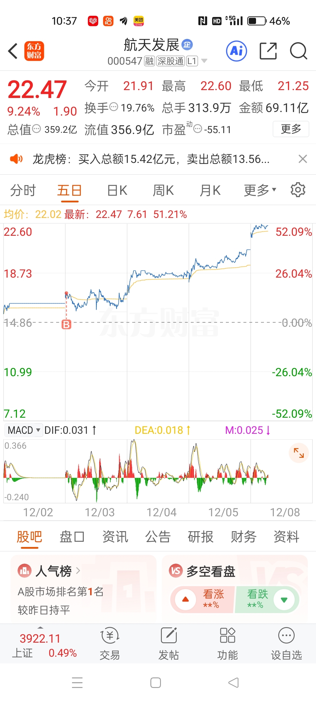 看到评论区我会笑死,商业航天龙头航天发展底部7.6上来涨两倍没有,高吗?鼠目寸光