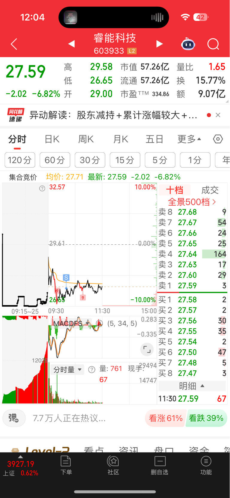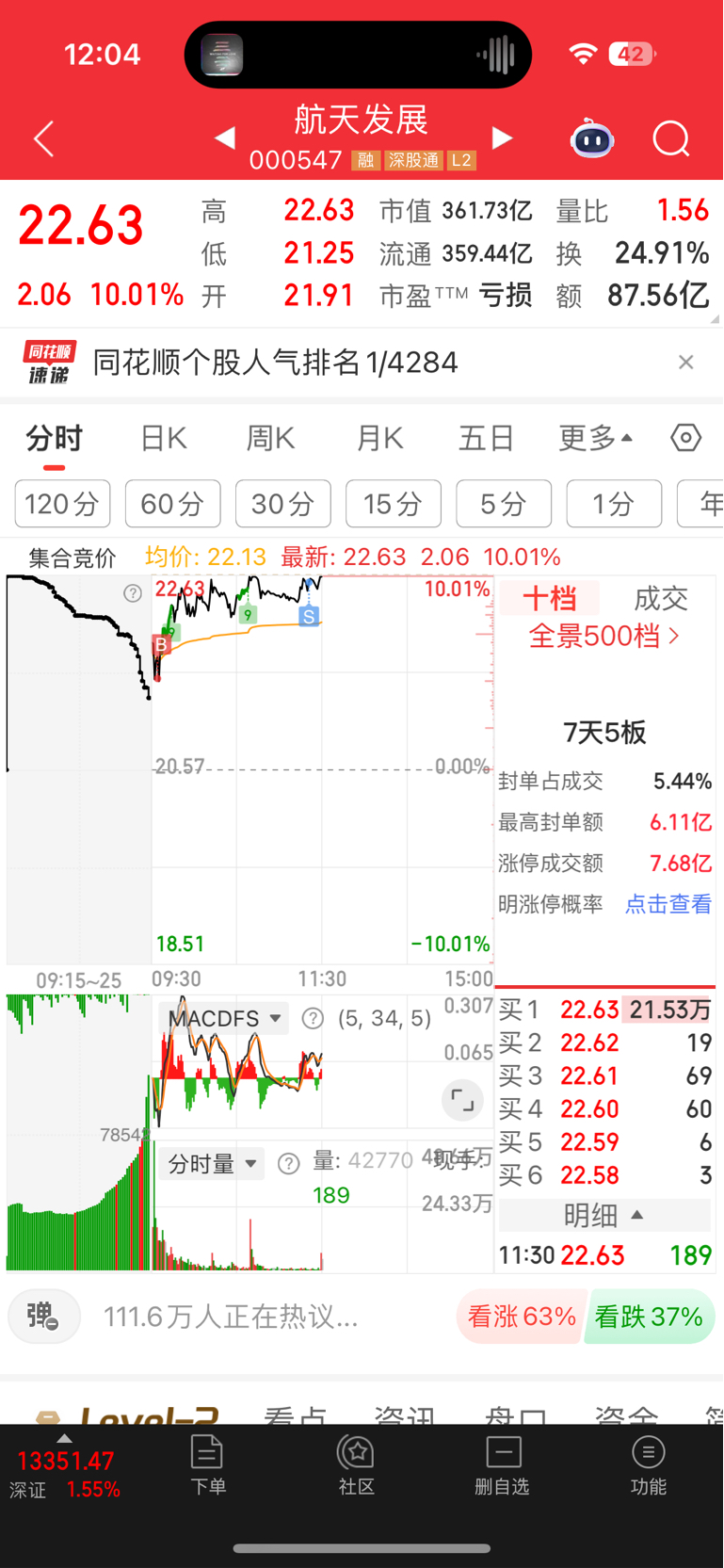 今天的机器人是真弱啊,太弱了吧。开盘加仓航天发展,临近午盘感觉不太对就t出去了,