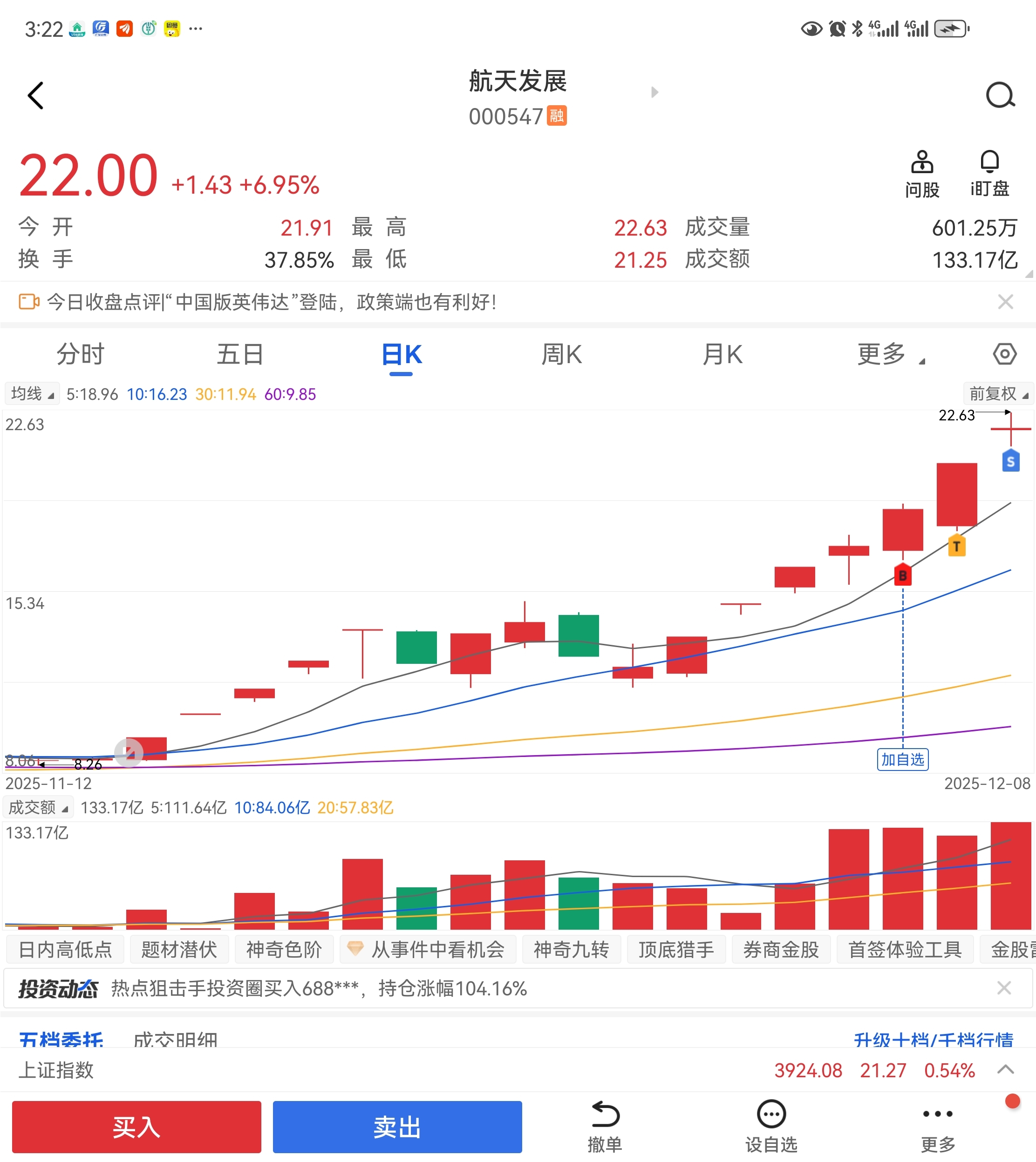 $航天发展(SZ000547)$ 这么好行情都封不住,先出来。