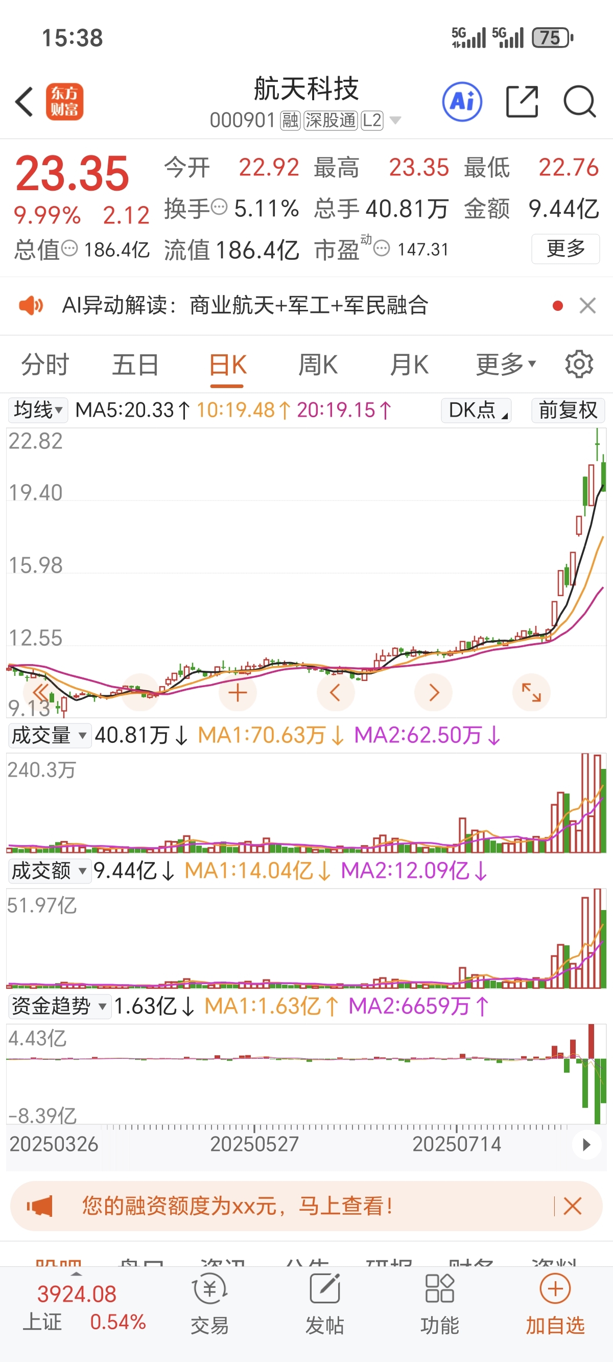 $航天发展(SZ000547)$ 跟之前航天科技摸一摸,收的十字星线,第二天低开迅速跌停,我先挂隔夜单跑了,晚了出不去了