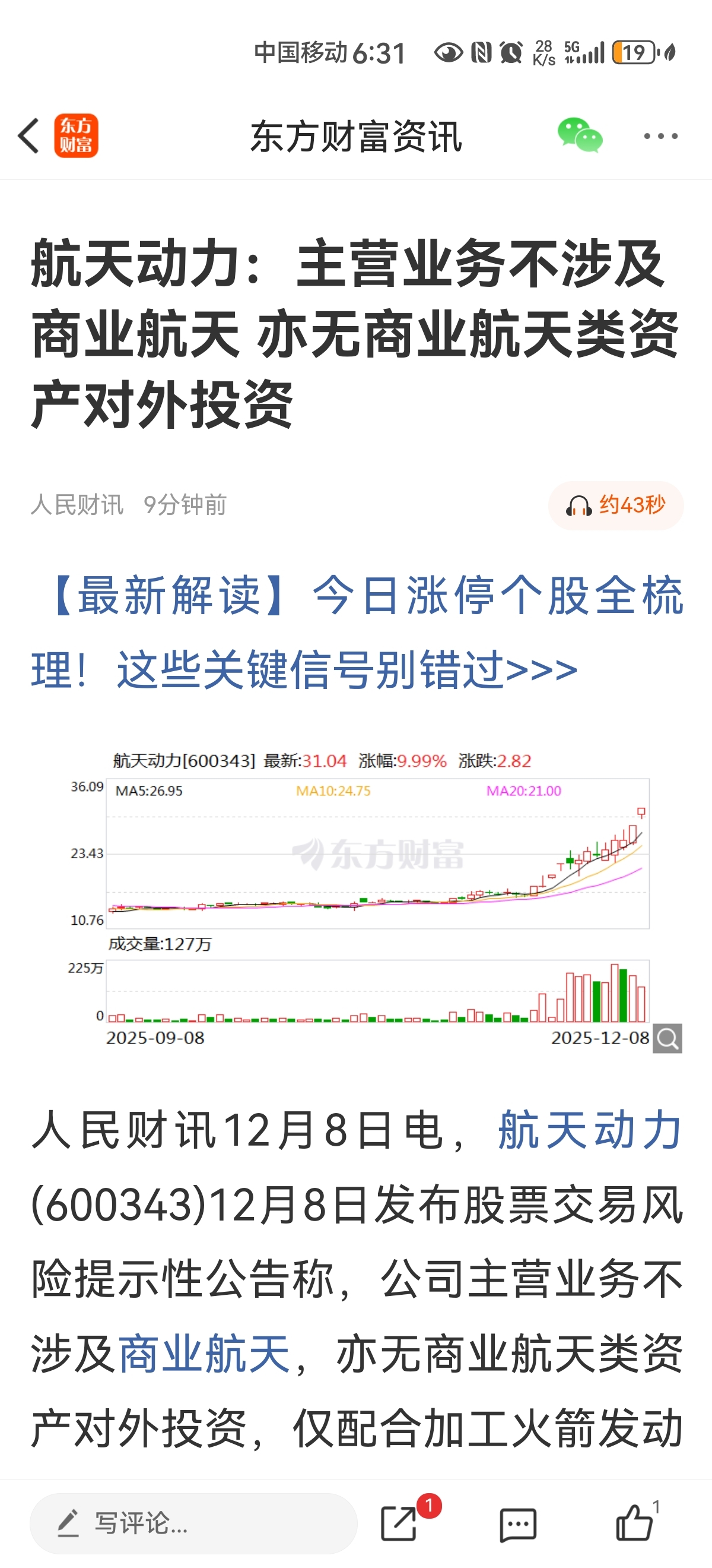 明天直接涨停航天发展才是龙
