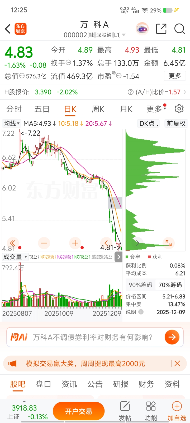 $航天发展(SZ000547)$ $平潭发展(SZ000592)$ $实达集团(SH600734)$ 上涨没有顶,下跌没有底,永远都不要去买下跌趋势的股票,特别是万科