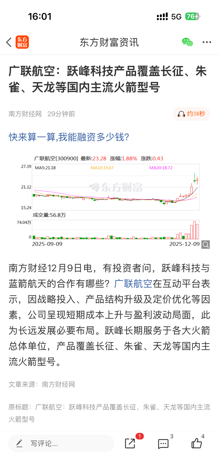 南方财经12月9日电,有投资者问,跃峰科技与蓝箭航天的合作有哪些?广联航空在互动