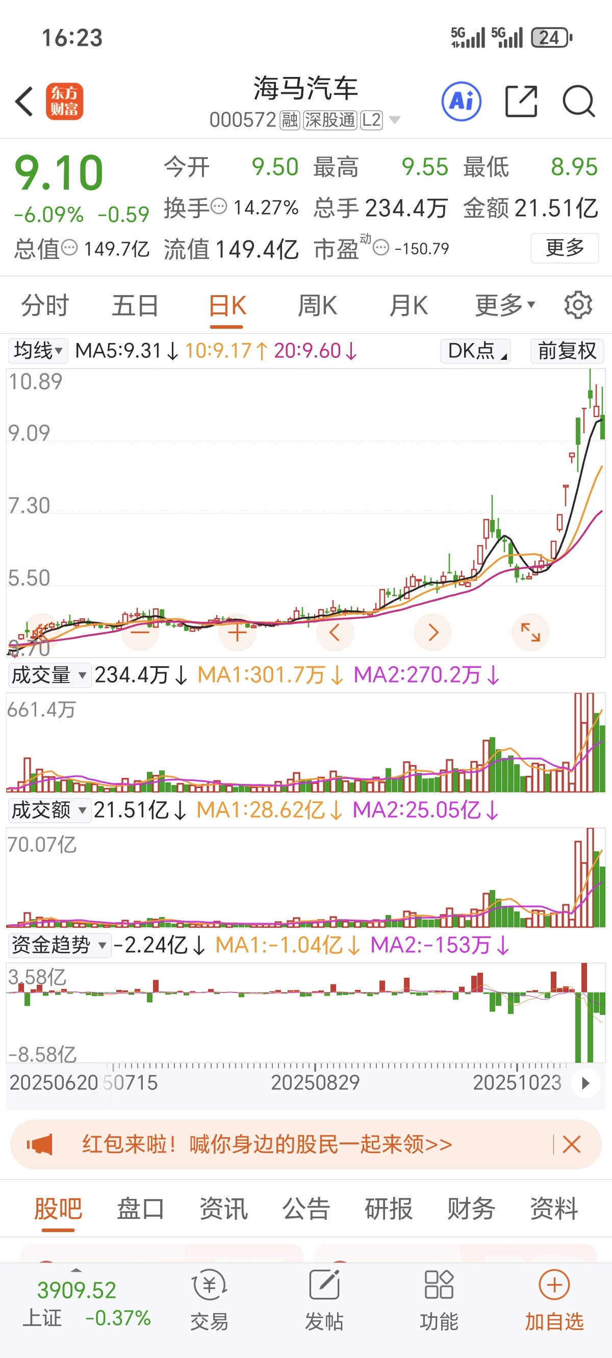 $航天发展(SZ000547)$ 跟海马汽车那几天一模一样,明天基本就是跌停开了,最少三个跌停才能放人出去,现在挂单还来得及,我先挂隔夜单跑了,股吧全是唱多的韭菜,今天主力出货一百多亿,估计跌到8块钱才能止稳,哪儿来回哪儿去