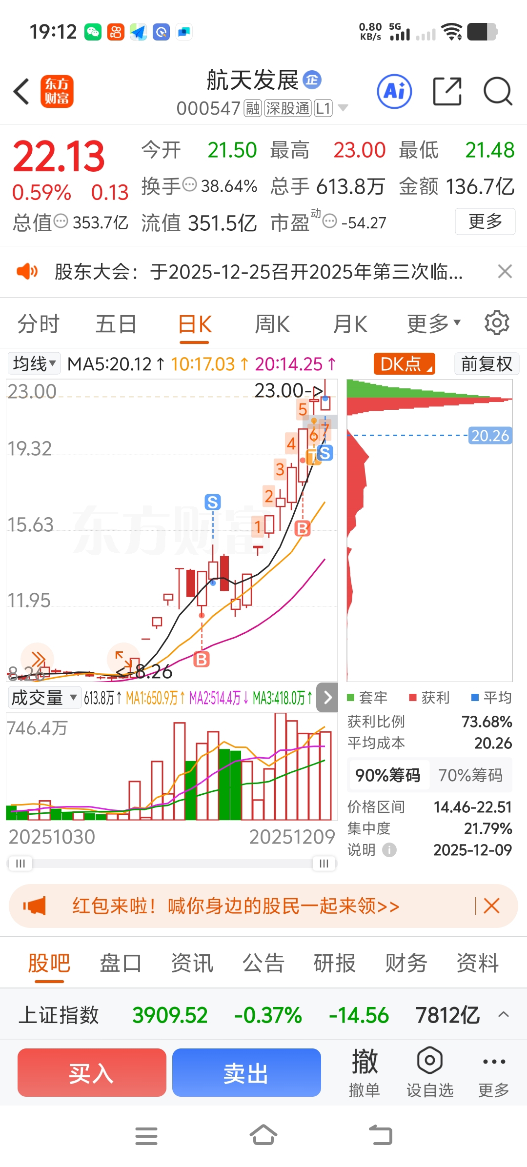 $航天发展(SZ000547)$ 不好主力今天筹码都跑光了诱,都是散户接的有