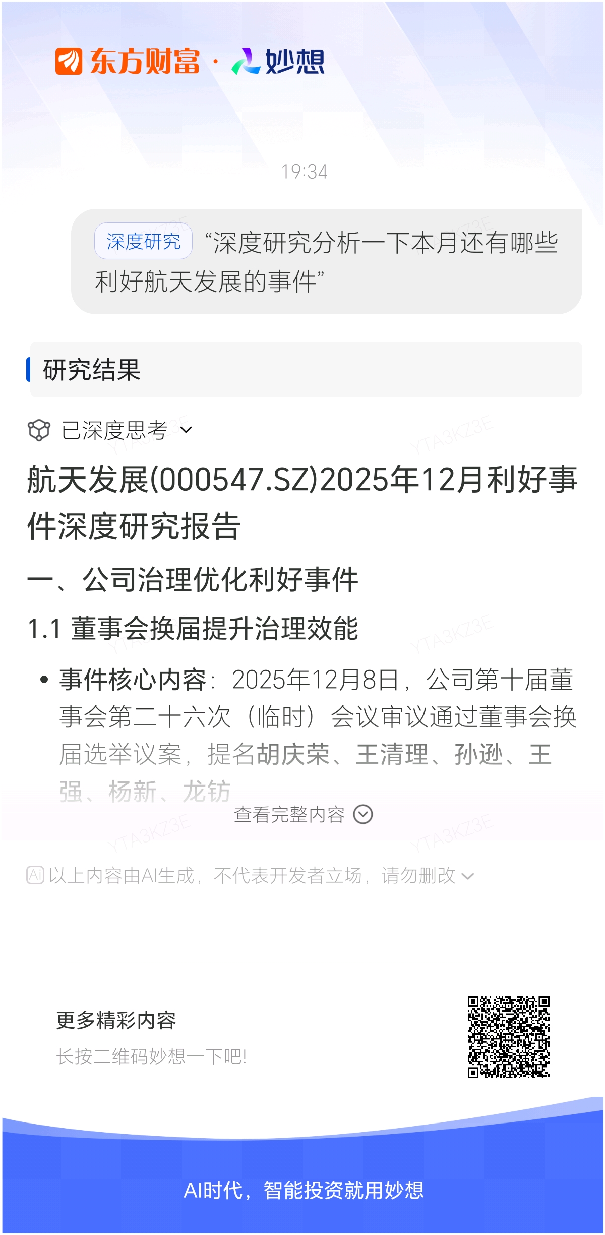 妙想一下:“深度研究分析一下本月还有哪些利好航天发展的事件”