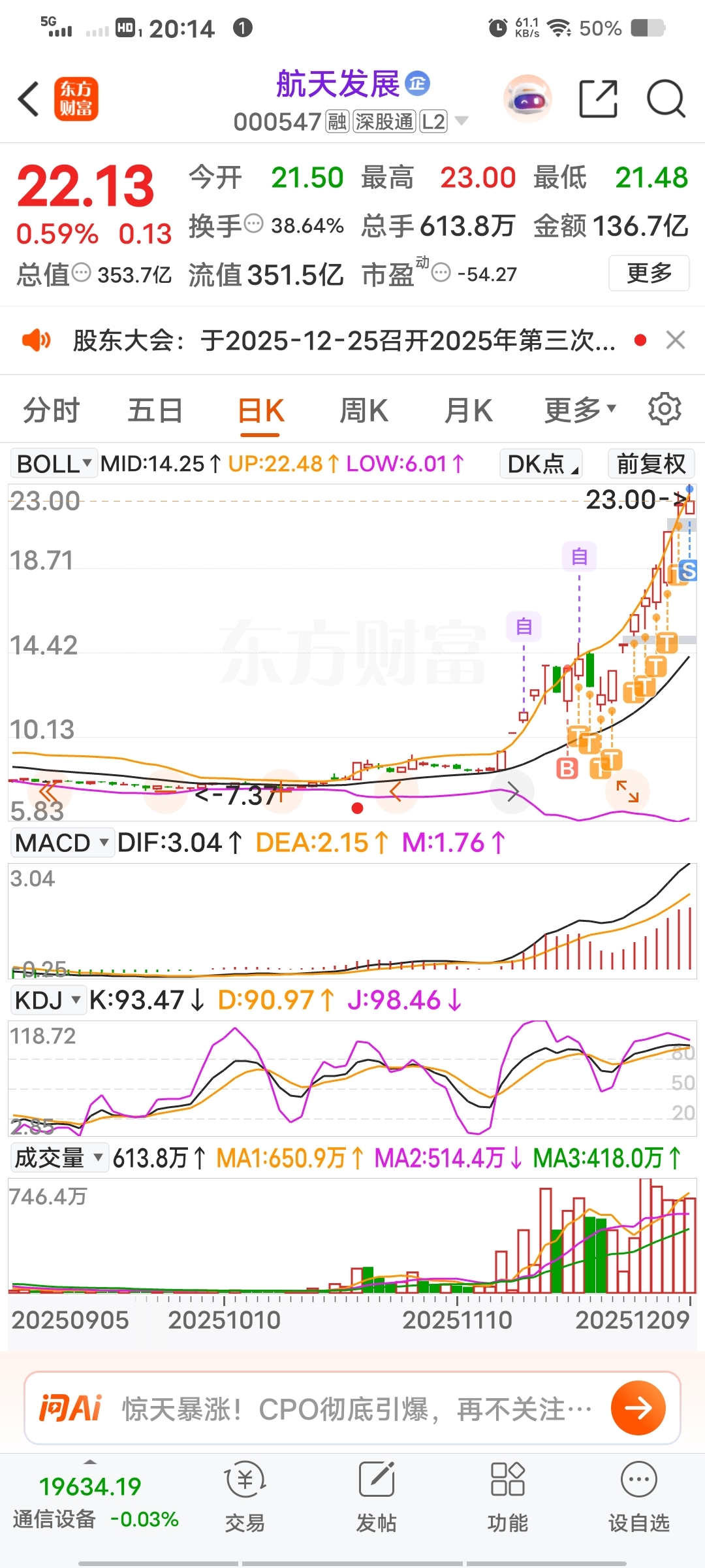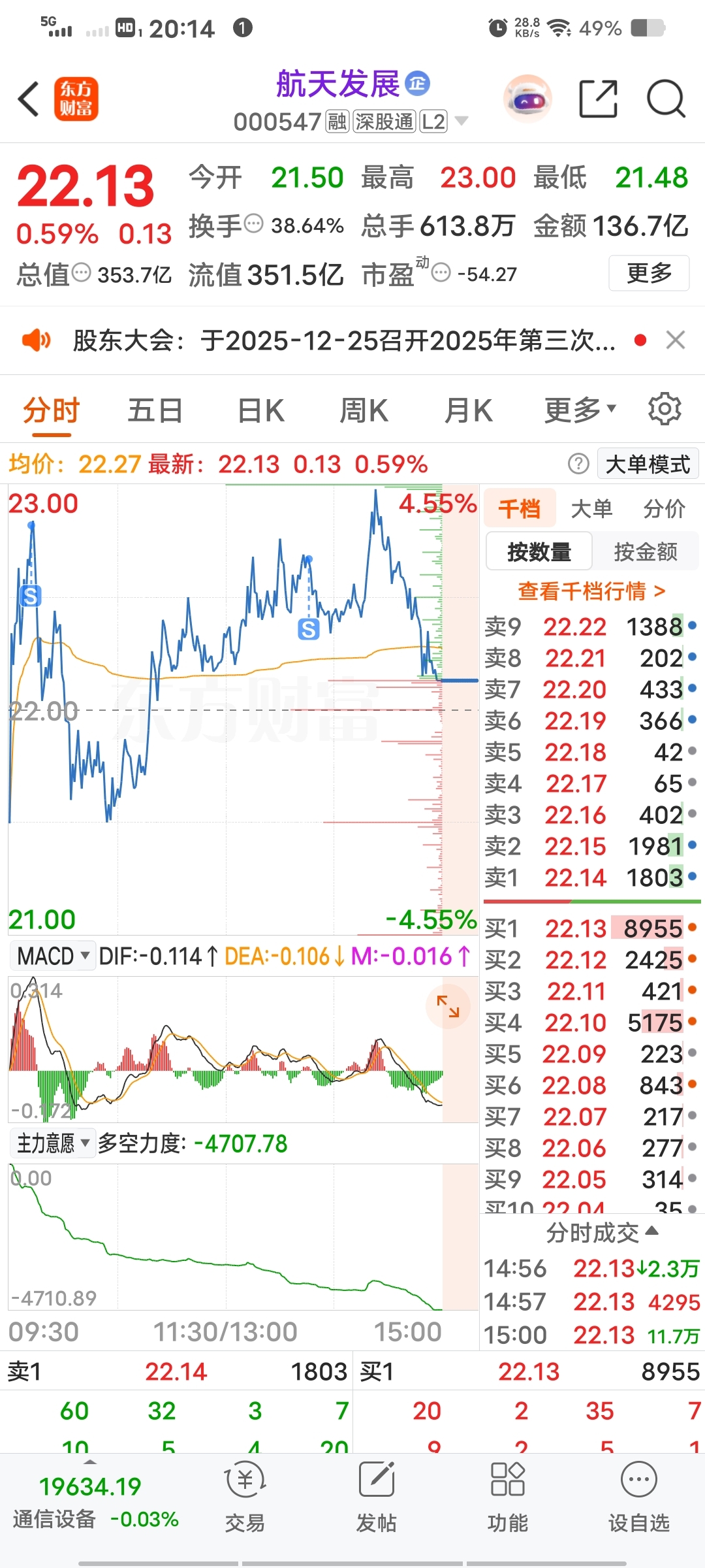$航天发展(SZ000547)$ 听说出减持公告了,吓得我赶紧上来看一眼,这好像是人家已经减持完的公告吧,不是准备要减持的公告吧,不过就算不出这个公告这个位置也该防一手吧,这个公告会被人误解成利空,散户可不管你啥时候减持,只认得减持两字,明天估计情绪不太好,我想着明天水下3到5个点低吸一波,这样一搞,搞得我明天都不敢进了,虽然已经清仓,但是还想进去吃个鱼尾