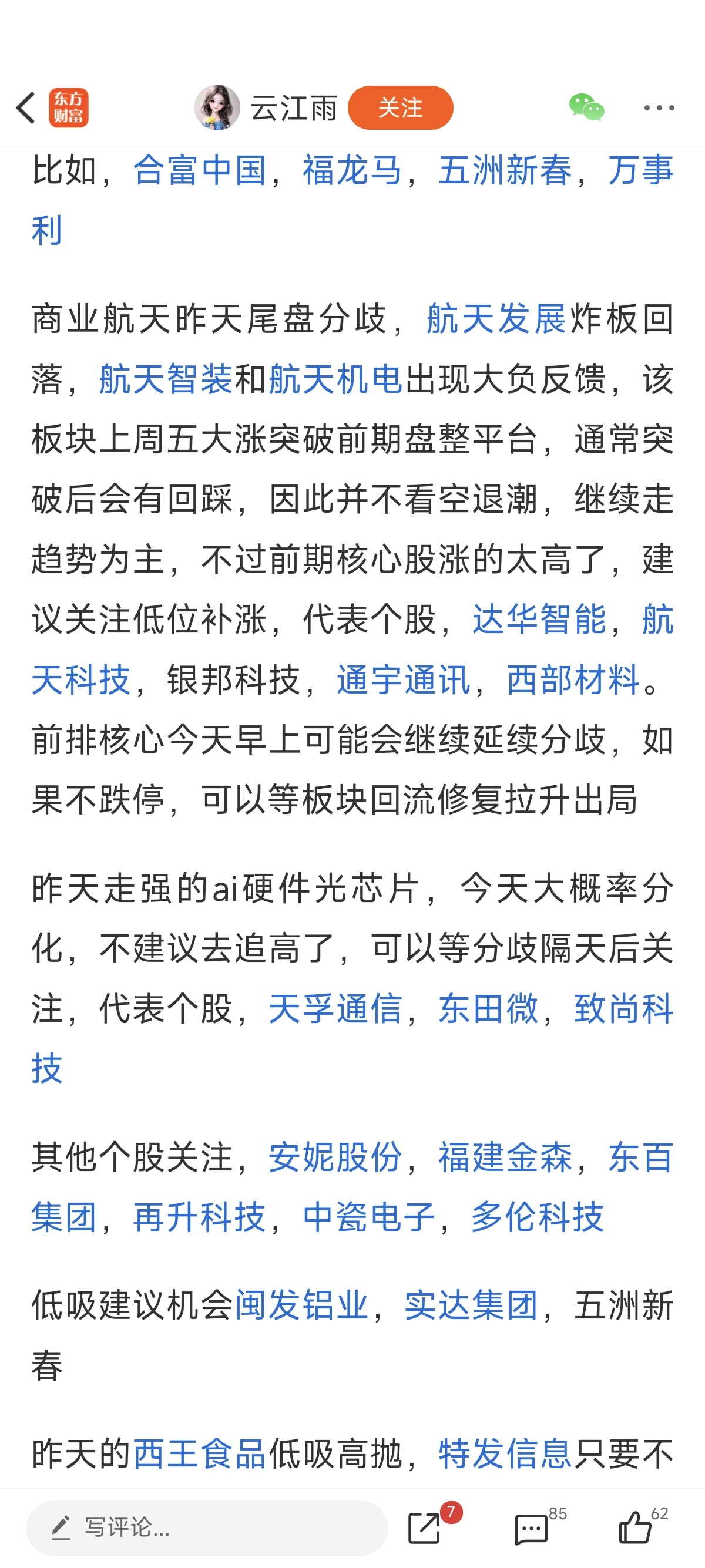 郑重声明:用户在财富号/股吧/博客等社区发表的所有信息(包括但不限于文字、视频、音频、数据及图表)仅代表个人观点,与本网站立场无关,不对您构成任何投资建议,据此操作风险自担。请勿相信代客理财、免费荐股和炒股培训等宣传内容,远离非法证券活动。请勿添加发言用户的手机号码、公众号、微博、微信及QQ等信息,谨防上当受骗!