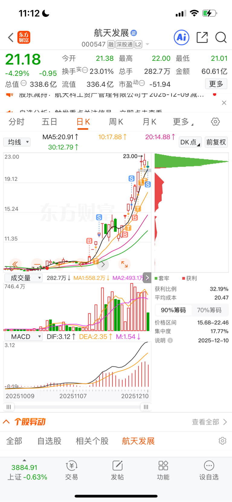 $航天发展(SZ000547)$ 清仓了,大家发财