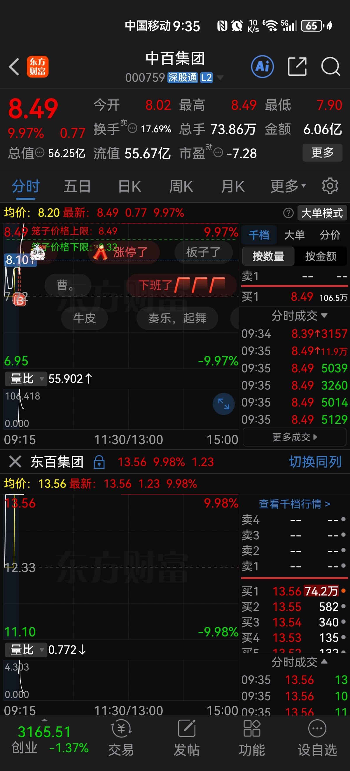 不好意思我砸了!去买永辉超市没买到直接干了中百集团百万封单明天一字涨停买不到