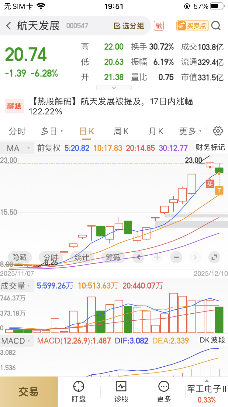 $航天发展(SZ000547)$ 对不起各位了,我的手有毒,我一买它就不涨了,前面看着天天涨就是不敢买,为啥等我去了就崩了,你倒是继续涨啊?航天动力都比你强,难道我又被勾庄盯上了吗圈,我到底该怎么买卖才不会被套呢
