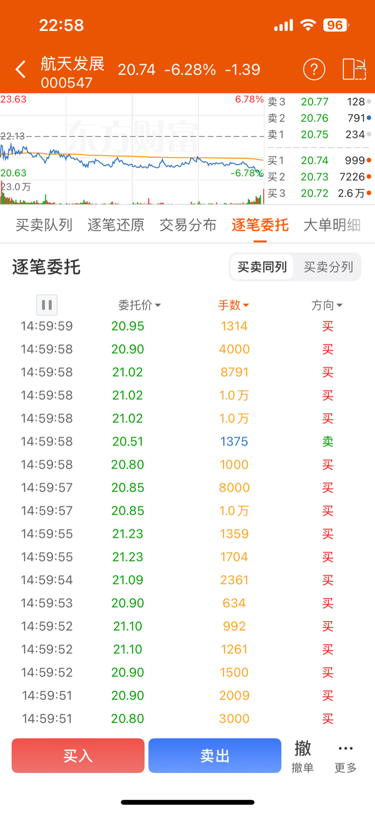 $航天发展(SZ000547)$ 竞价是真的大单在抢