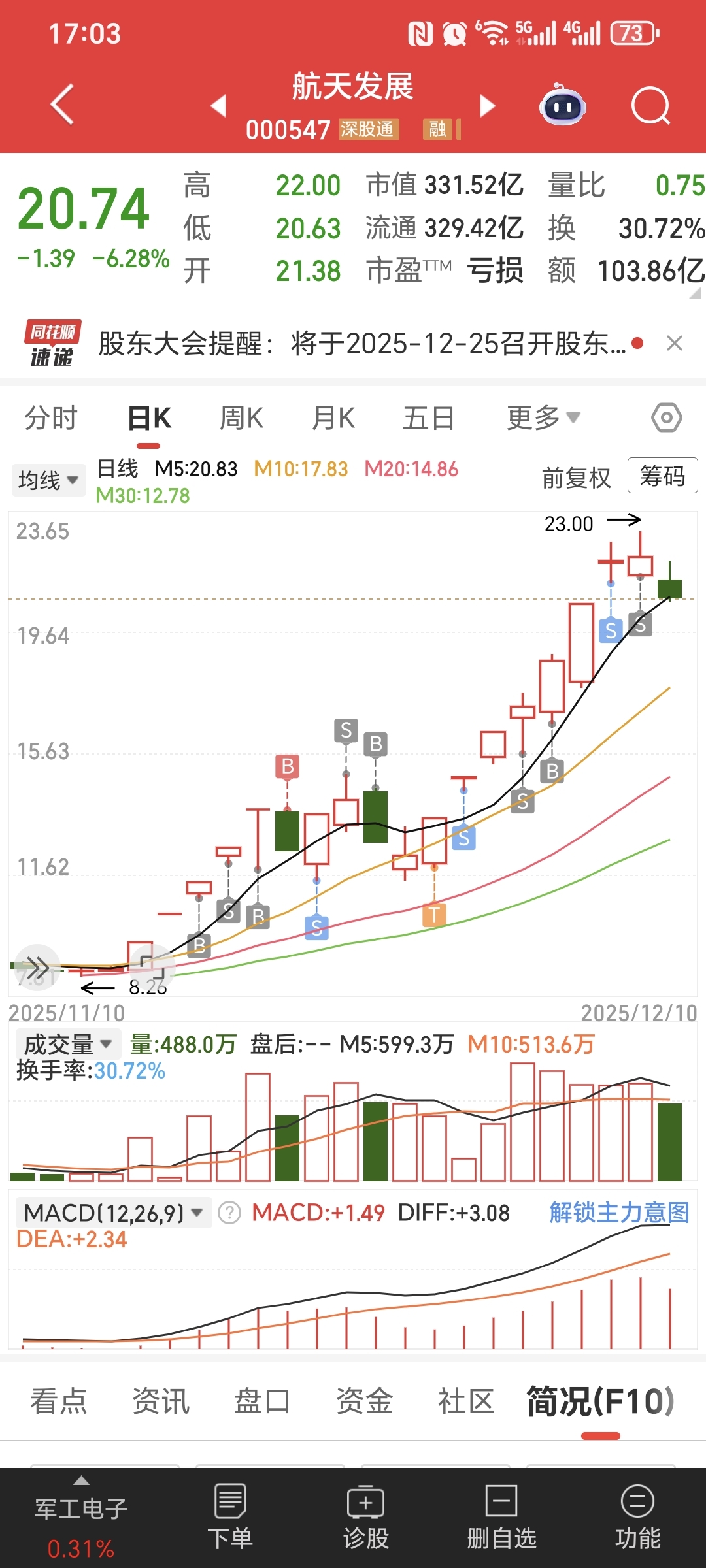 $航天发展(SZ000547)$ 今年最成功的操作之一