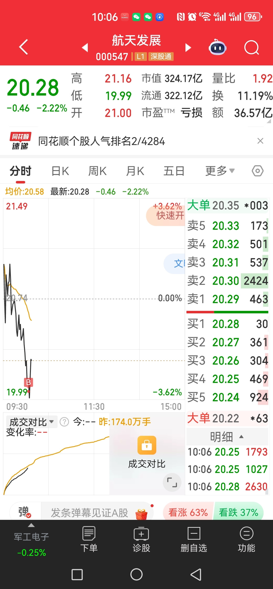 T出去一些粤桂,低吸了航天发展,预判性先手,航天发展后续围绕20附近可能要震荡一