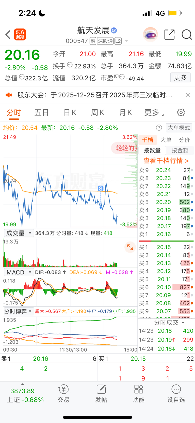 $航天发展(SZ000547)$ 自己都笑了,折磨大半天,也算给我补偿了