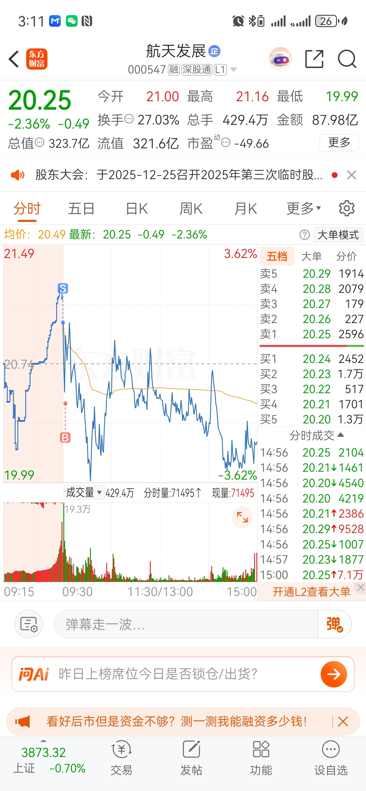 $航天发展(SZ000547)$ 真郁闷