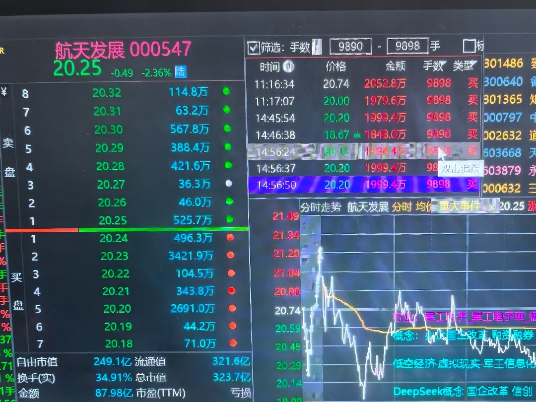 $航天发展(SZ000547)$ 9898挂了共7笔,撤了两笔,一笔排队未成交,全部成交两笔,其余两笔成交大部分,合计约6900万