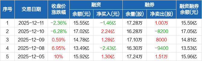 航天发展:融资净偿还1.46亿元,两市排名第19(12-11)