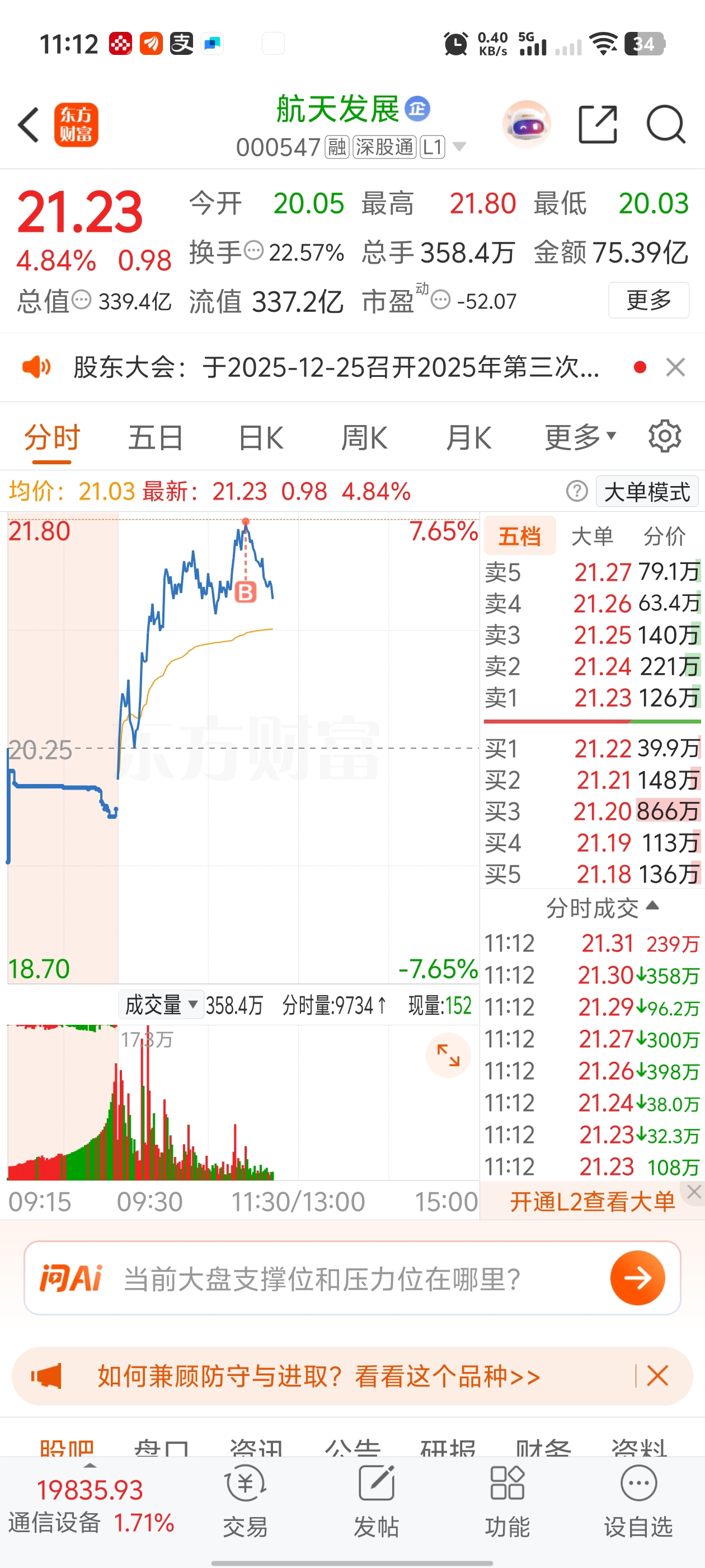 $航天发展(SZ000547)$ 就买几千元你孔马上崩了