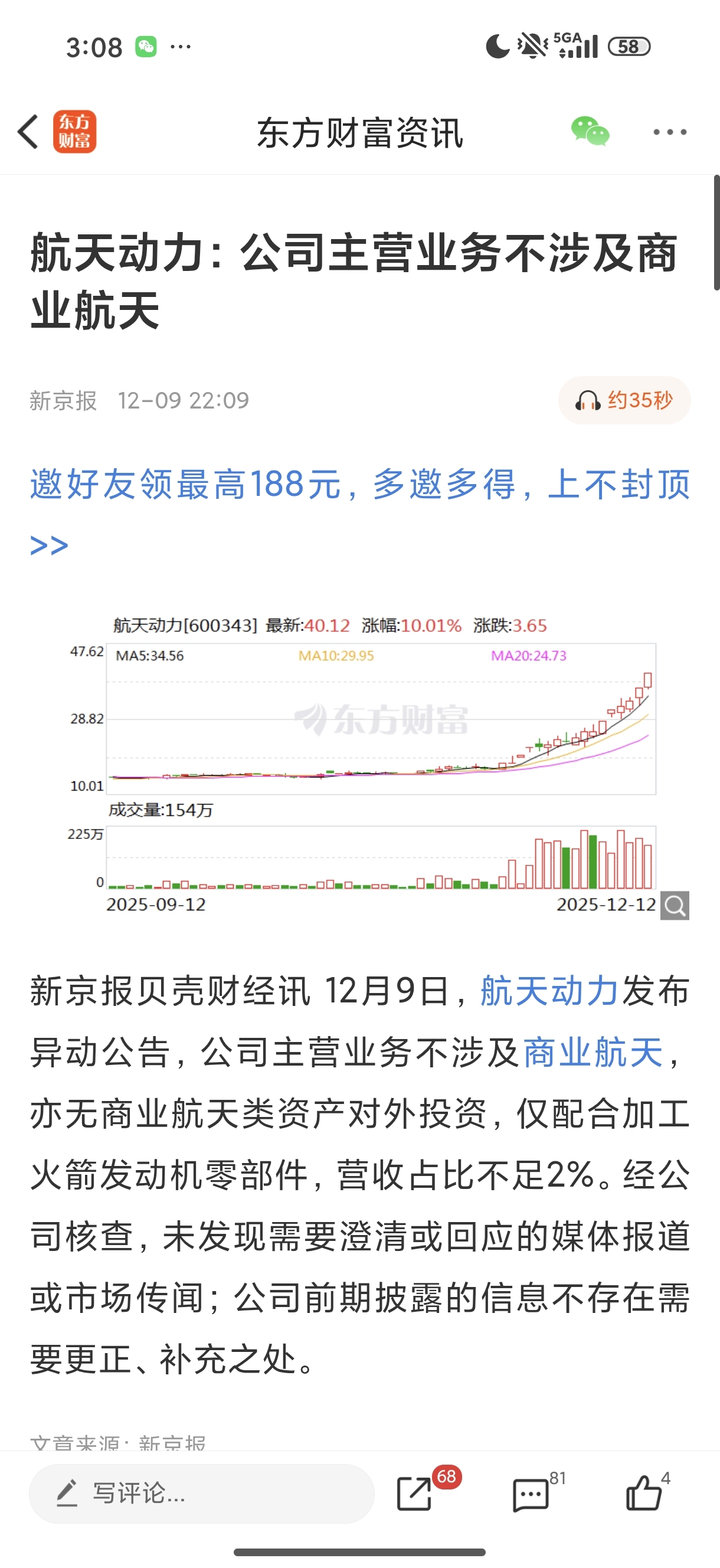 $航天发展(SZ000547)$ 乱发小作文的能不能管管,前两天就把我从动力洗出来了。